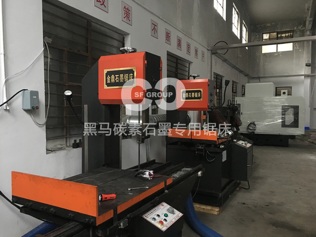 公司石墨原物料锯切上,选用浙江金鼎锯业的石墨专用锯床,该锯床具备快速切割、切割面细腻平整的特点,能够为客户加工出出色外观的石墨电极物料;目前,昆山黑马碳素有限公司具备4台该型号石墨锯床,黑马碳素(宁波)有限公司具备3台该型号石墨锯床、滁州黑马碳素有限公司具备2台该型号石墨锯床;能够满足客户对原物料的锯切需求