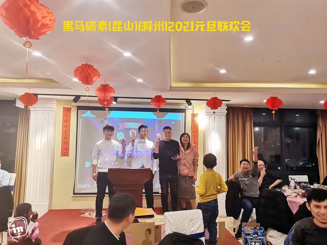 因疫情原因,黑马碳素一年一度的元旦年终团体旅游活动第一次暂停,今年改为昆山、宁波公司各自举行元旦联欢活动,活动举办得到了员工们热烈的响应和支持;公司准备了丰富多彩的节目,包括现场互动游戏、丰厚的抽奖、唱歌、抢红包等,对于到会的全体员工均每人一份暖手礼,感谢黑马碳素苏、浙团队一直以来的辛勤付出,也感谢刚刚成立的滁州公司小团队再滁州市当地的积极筹备工作;黑马碳素始终严格要求自己,力争成为石墨电极领域的领先品牌!!告别不平凡的2020,我们将迎来充满希望的2021年;在此预祝大家2021年身体健康、万事如意、家庭幸福!!
