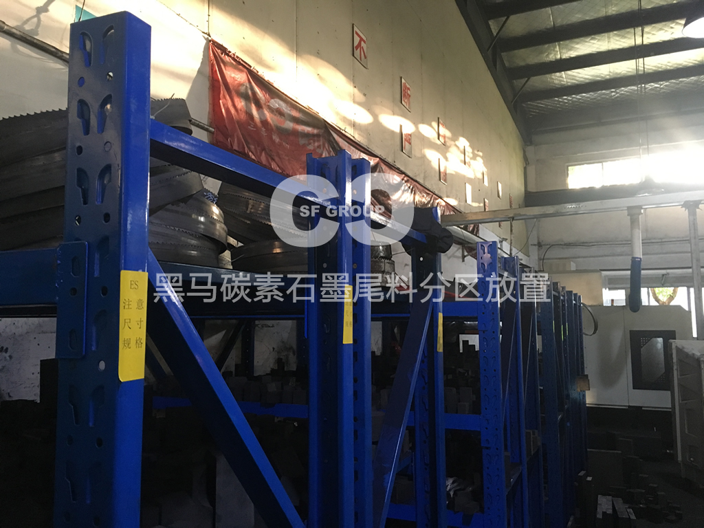黑马碳素对于原物料上的管控,有一套规范的流程,除了前期对于优质石墨物料的实验测试,后续物料进入仓储后的抽样放电测试外,对于锯切过程中产生的尾料,一样要求相应工作人员严格分区放置,杜绝不同等级材料出现混切而造成客户成品电极上使用问题;